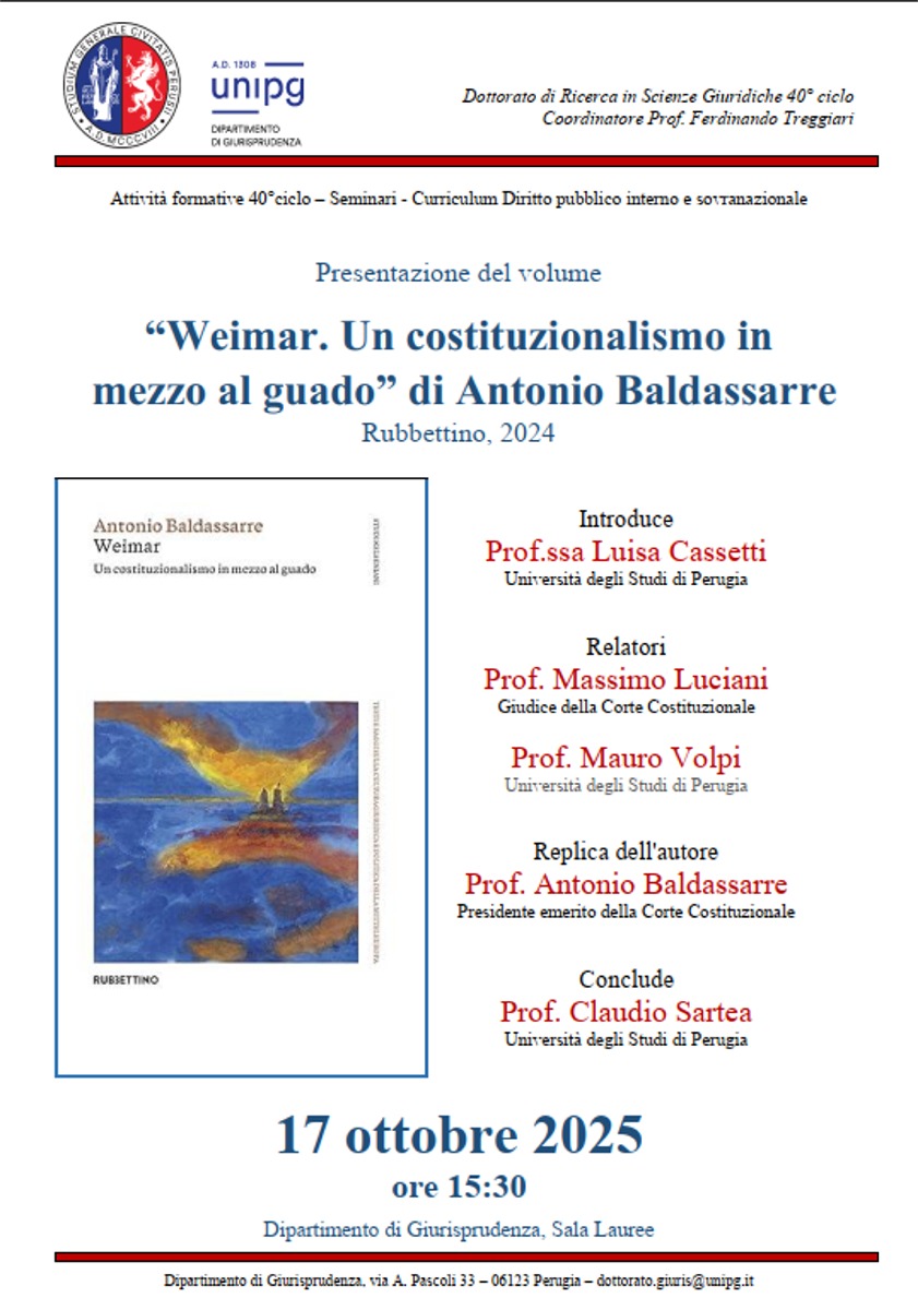 Ordinario di Diritto costituzionale PhD in Diritto pubblico Dipartimento di Giurisprudenza Università degli Studi di Perugia (Italy)